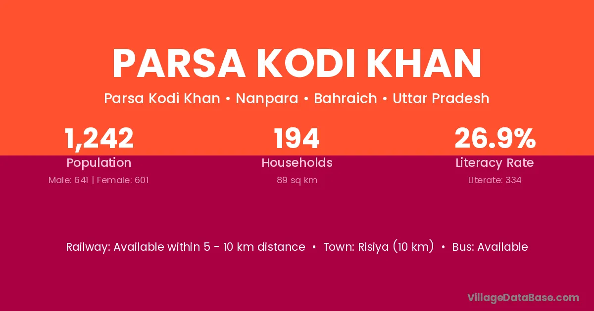 Risiya (10 km) is the nearest town to Parsa Kodi Khan village for major economic activities and is located approximately 10 km away.