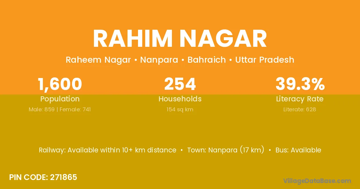 Nanpara (17 km) is the nearest town to Rahim Nagar village for major economic activities and is located approximately 17 km away.