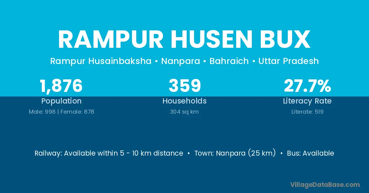 Nanpara (25 km) is the nearest town to Rampur Husen Bux village for major economic activities and is located approximately 25 km away.