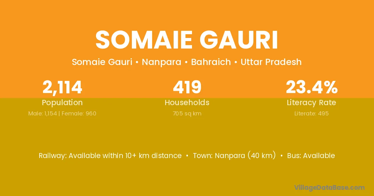 Nanpara (40 km) is the nearest town to Somaie Gauri village for major economic activities and is located approximately 40 km away.