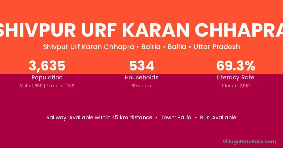 Shivpur Urf Karan Chhapra village has a total population of 3,635 people, of which 1,889 are males and 1,746 are females.