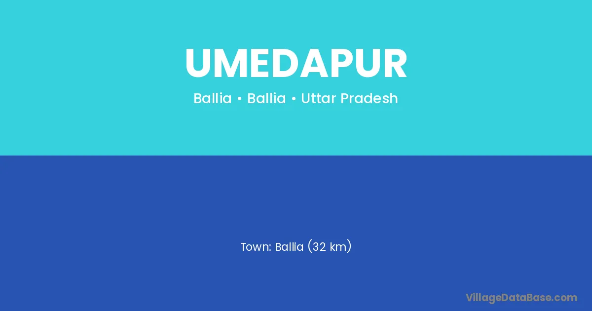 Ballia (32 km) is the nearest town to Umedapur village for major economic activities and is located approximately 32 km away.