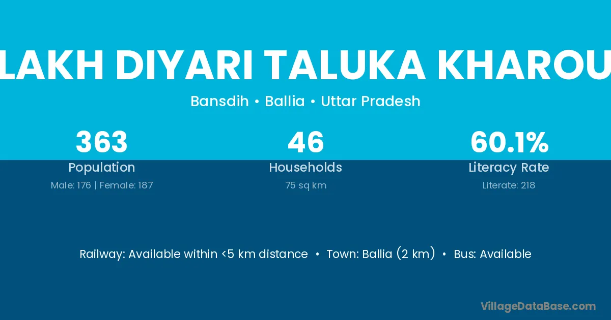 Ballia (2 km) is the nearest town to Alakh Diyari Taluka Kharouli village for major economic activities and is located approximately 2 km away.