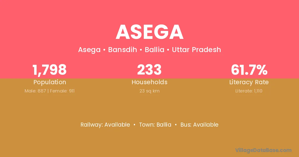 Asega village is located in the Bansdih Tehsil of the Ballia district in Uttar Pradesh .