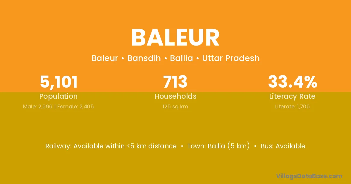 Ballia (5 km) is the nearest town to Baleur village for major economic activities and is located approximately 5 km away.