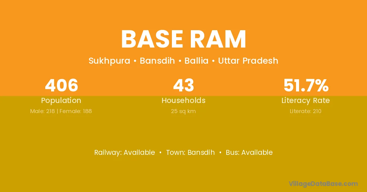 Base Ram village has a total population of 406 people, of which 218 are males and 188 are females.