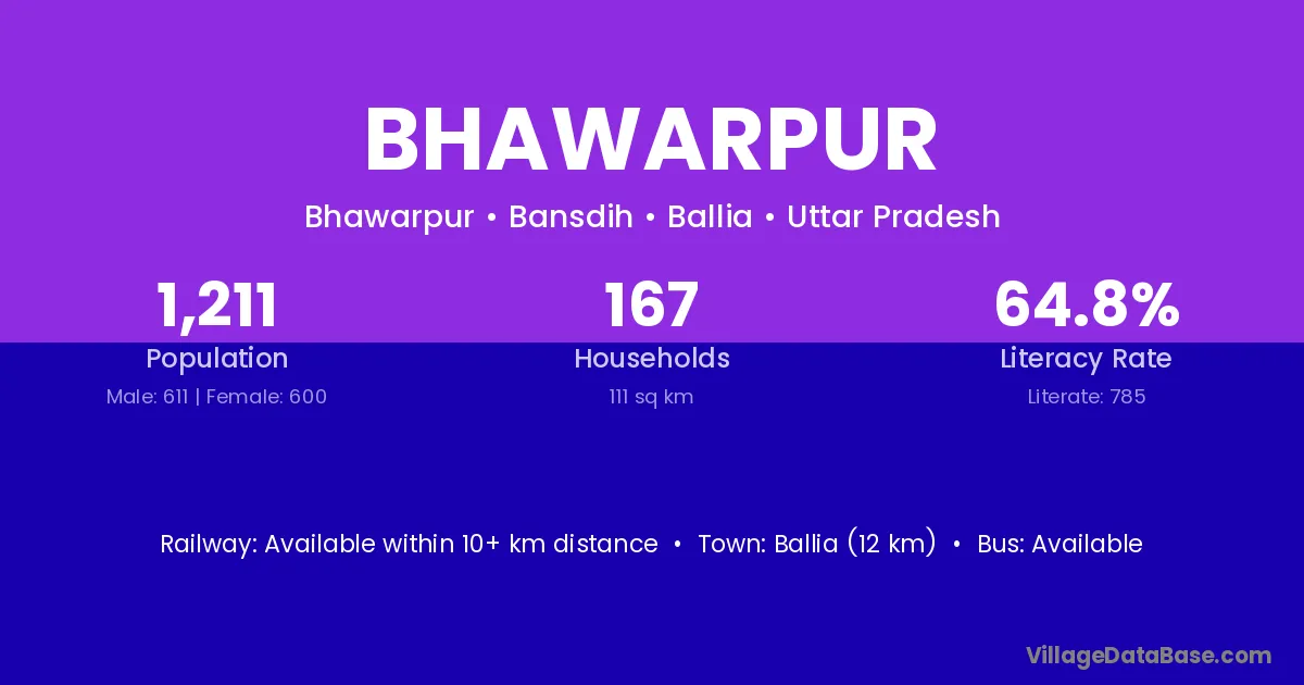 Ballia (12 km) is the nearest town to Bhawarpur village for major economic activities and is located approximately 12 km away.