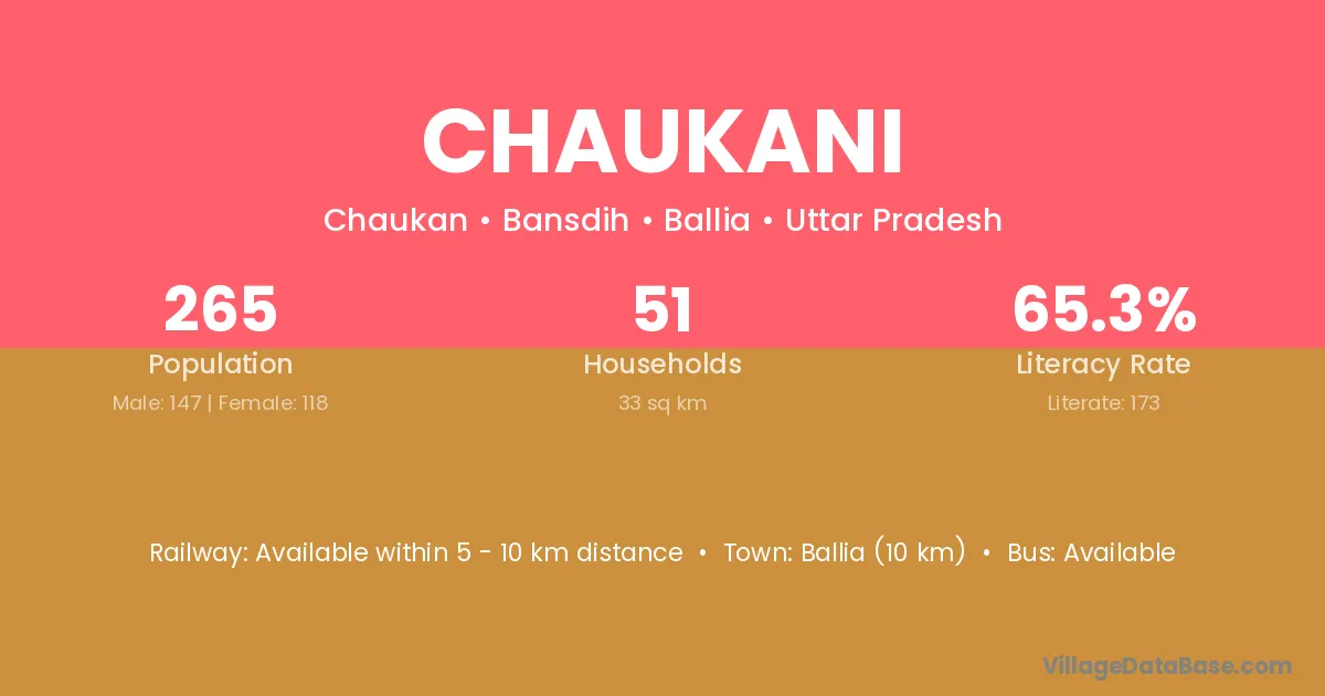 Ballia (10 km) is the nearest town to Chaukani village for major economic activities and is located approximately 10 km away.