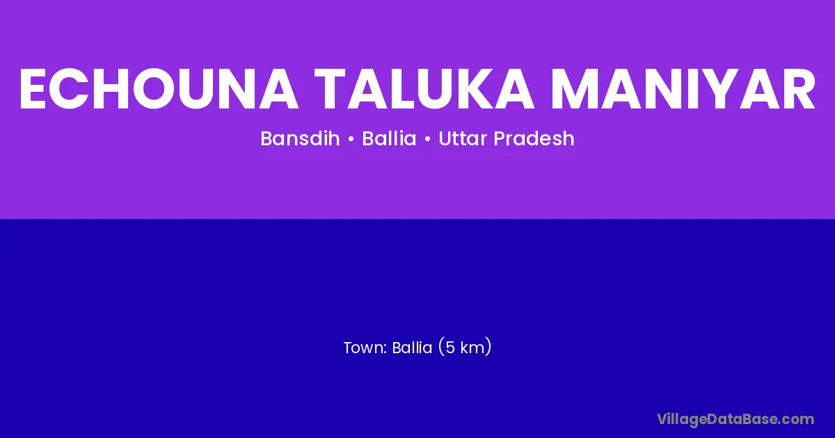 Ballia (5 km) is the nearest town to Echouna Taluka Maniyar village for major economic activities and is located approximately 5 km away.