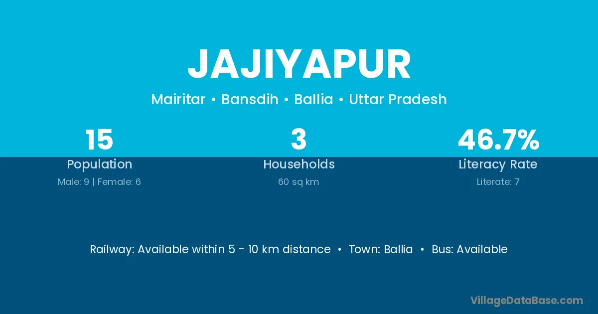 Ballia is the nearest town to Jajiyapur village for major economic activities