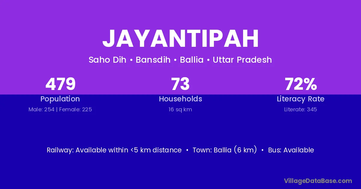 Ballia (6 km) is the nearest town to Jayantipah village for major economic activities and is located approximately 6 km away.