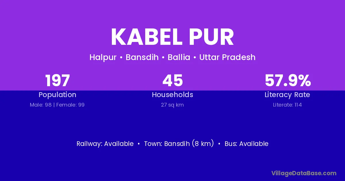 Bansdih (8 km) is the nearest town to Kabel Pur village for major economic activities and is located approximately 8 km away.