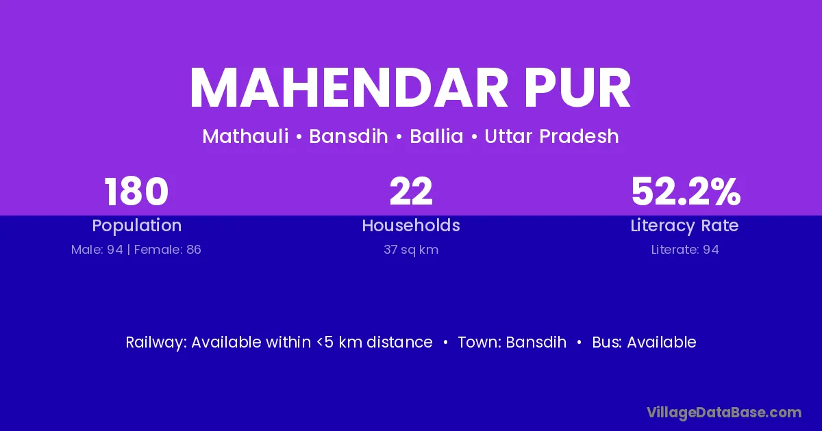Bansdih is the nearest town to Mahendar Pur village for major economic activities