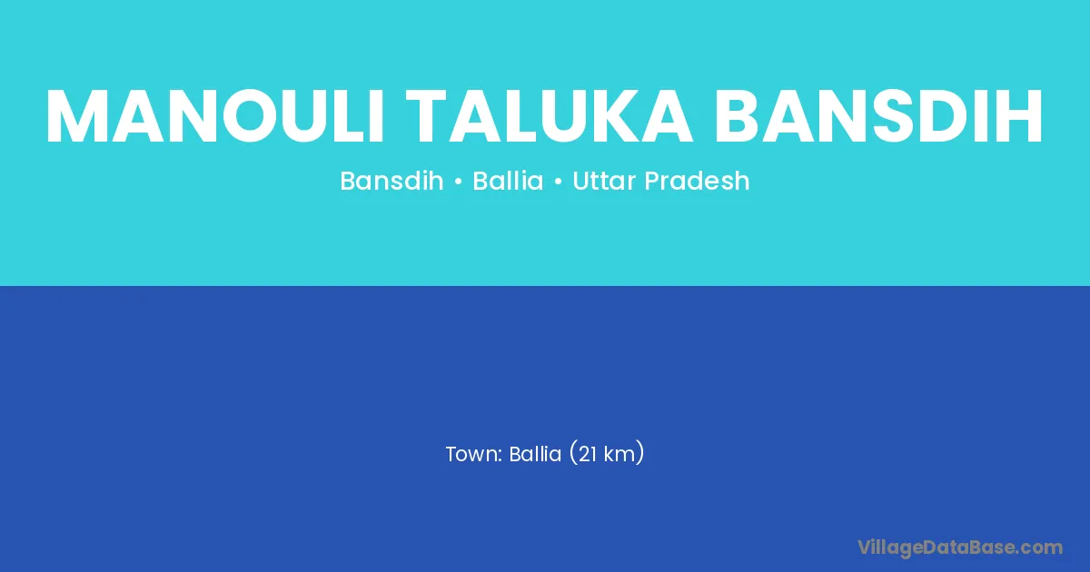 Ballia (21 km) is the nearest town to Manouli Taluka Bansdih village for major economic activities and is located approximately 21 km away.