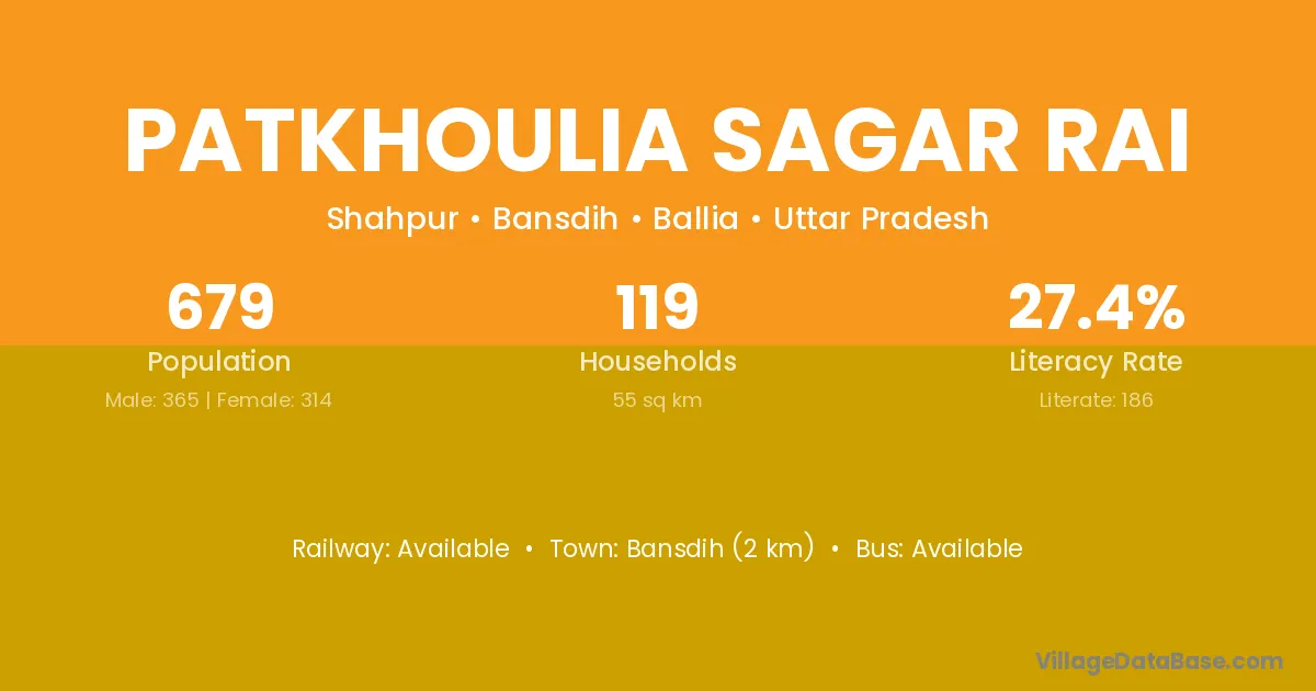 Patkhoulia Sagar Rai village has a total population of 679 people, of which 365 are males and 314 are females.