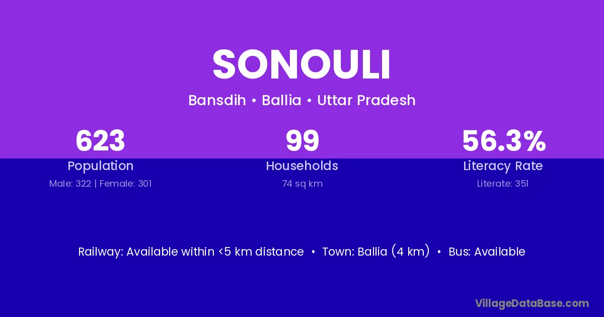 Ballia (4 km) is the nearest town to Sonouli village for major economic activities and is located approximately 4 km away.