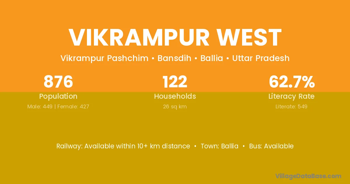 Vikrampur West village has a total population of 876 people, of which 449 are males and 427 are females.