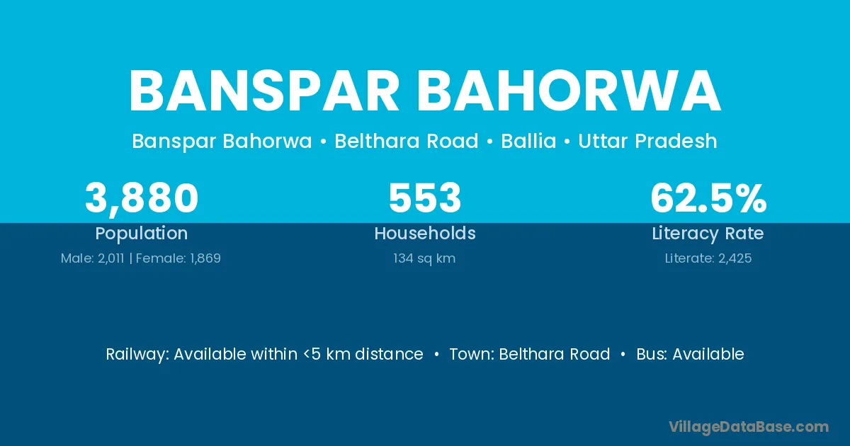 Banspar Bahorwa village has a total population of 3,880 people, of which 2,011 are males and 1,869 are females.
