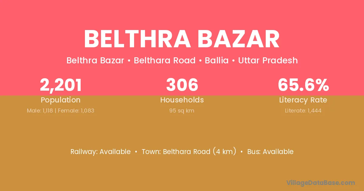 Belthra Bazar village has a total population of 2,201 people, of which 1,118 are males and 1,083 are females.