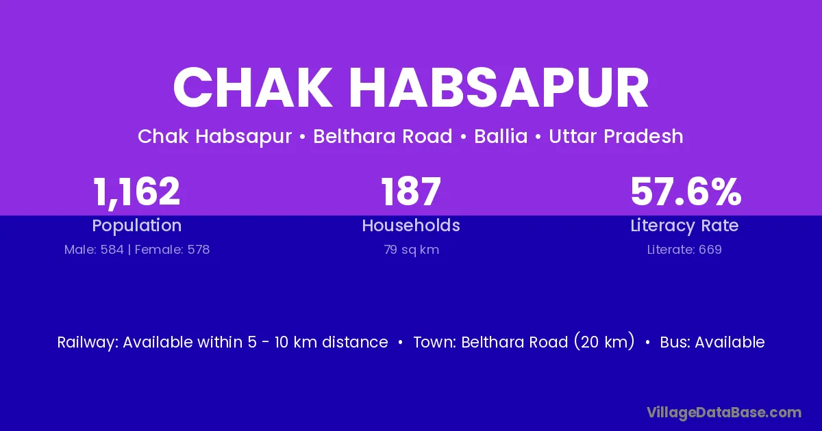 Belthara Road (20 km) is the nearest town to Chak Habsapur village for major economic activities and is located approximately 20 km away.