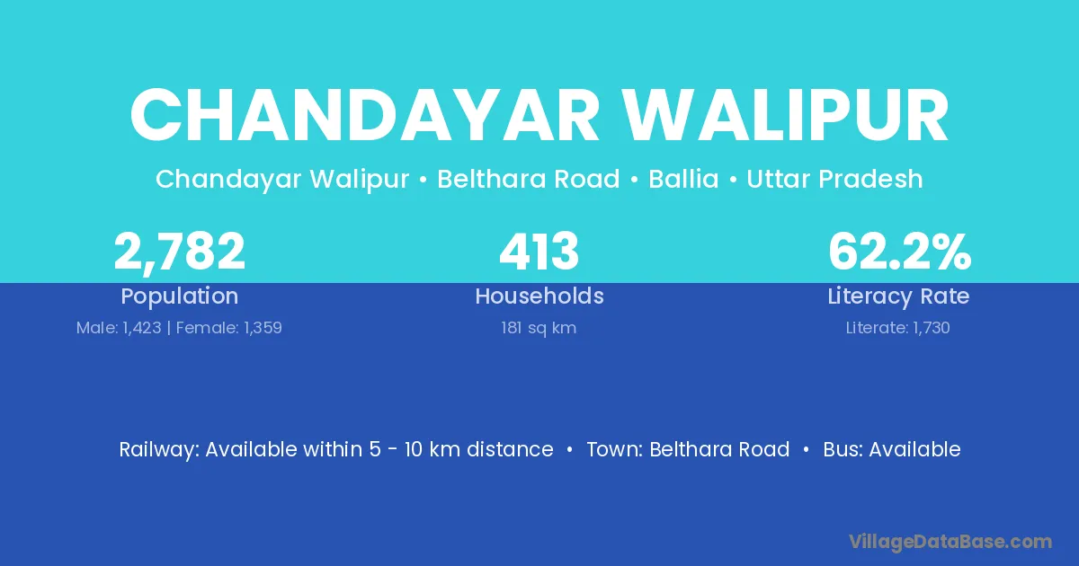 Belthara Road is the nearest town to Chandayar Walipur village for major economic activities