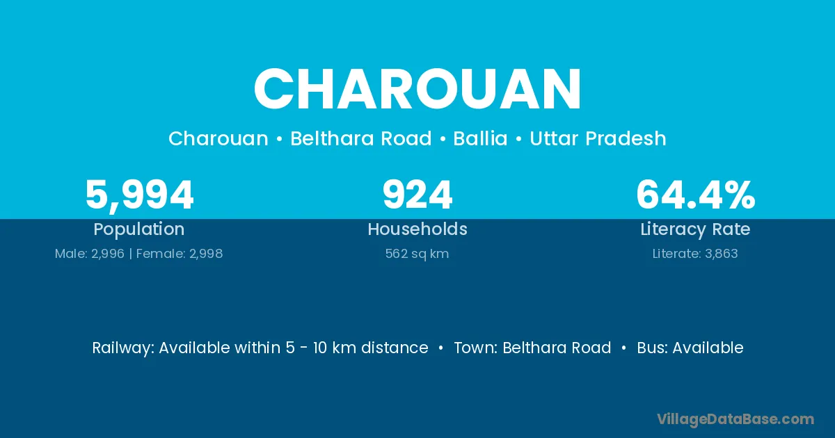 Belthara Road is the nearest town to Charouan village for major economic activities
