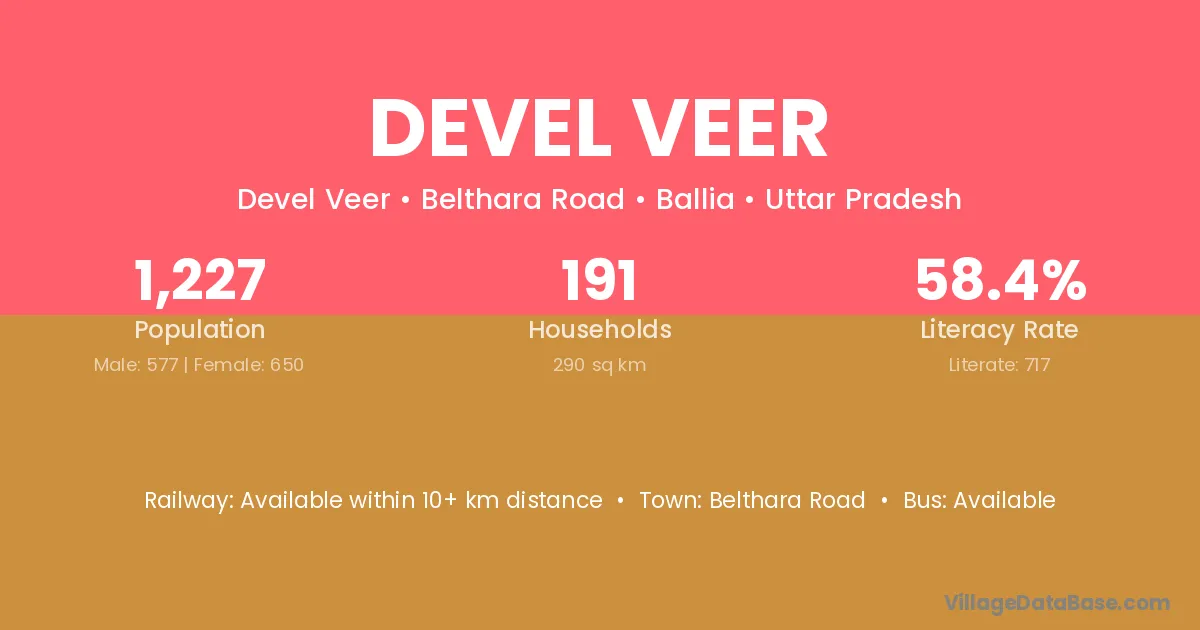 Devel Veer village has a total population of 1,227 people, of which 577 are males and 650 are females.
