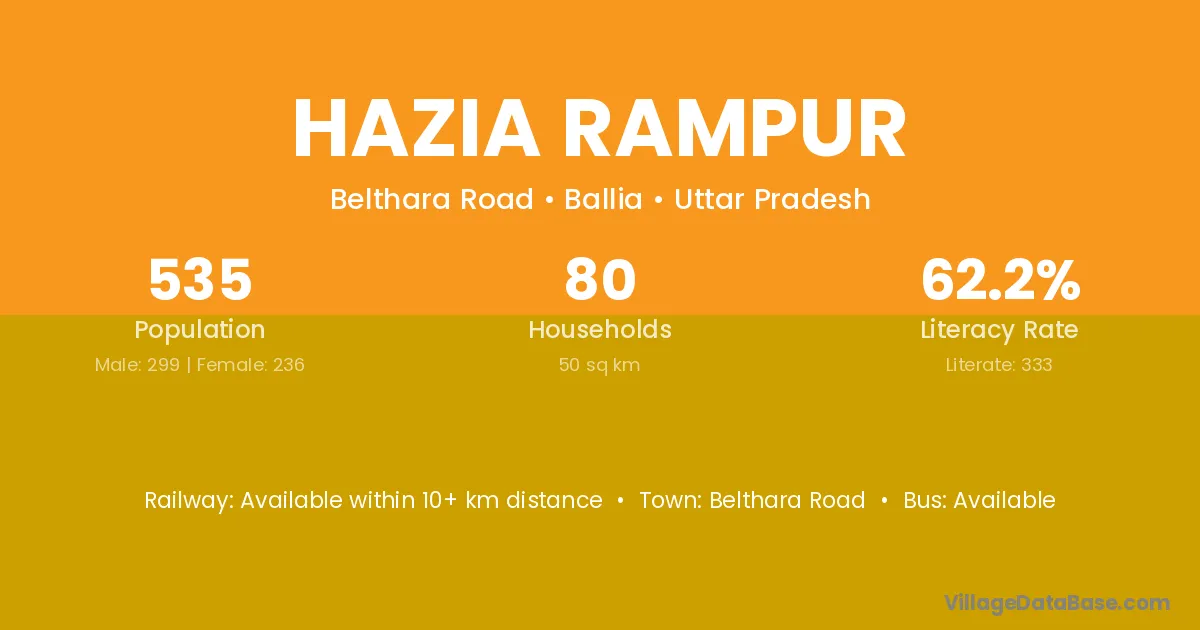 Hazia Rampur village has a total population of 535 people, of which 299 are males and 236 are females.
