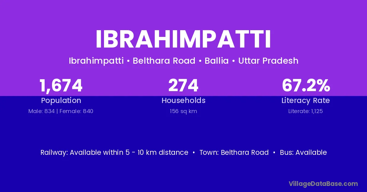Ibrahimpatti village has a total population of 1,674 people, of which 834 are males and 840 are females.