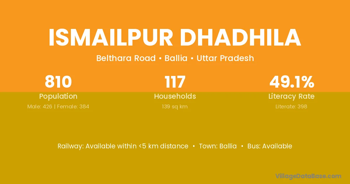 Ballia is the nearest town to Ismailpur Dhadhila village for major economic activities