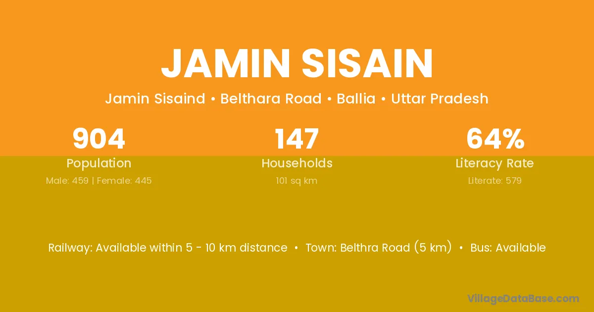 Belthra Road (5 km) is the nearest town to Jamin Sisain village for major economic activities and is located approximately 5 km away.