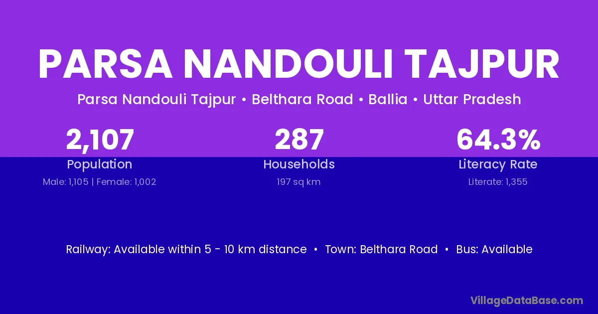 Parsa Nandouli Tajpur village has a total population of 2,107 people, of which 1,105 are males and 1,002 are females.
