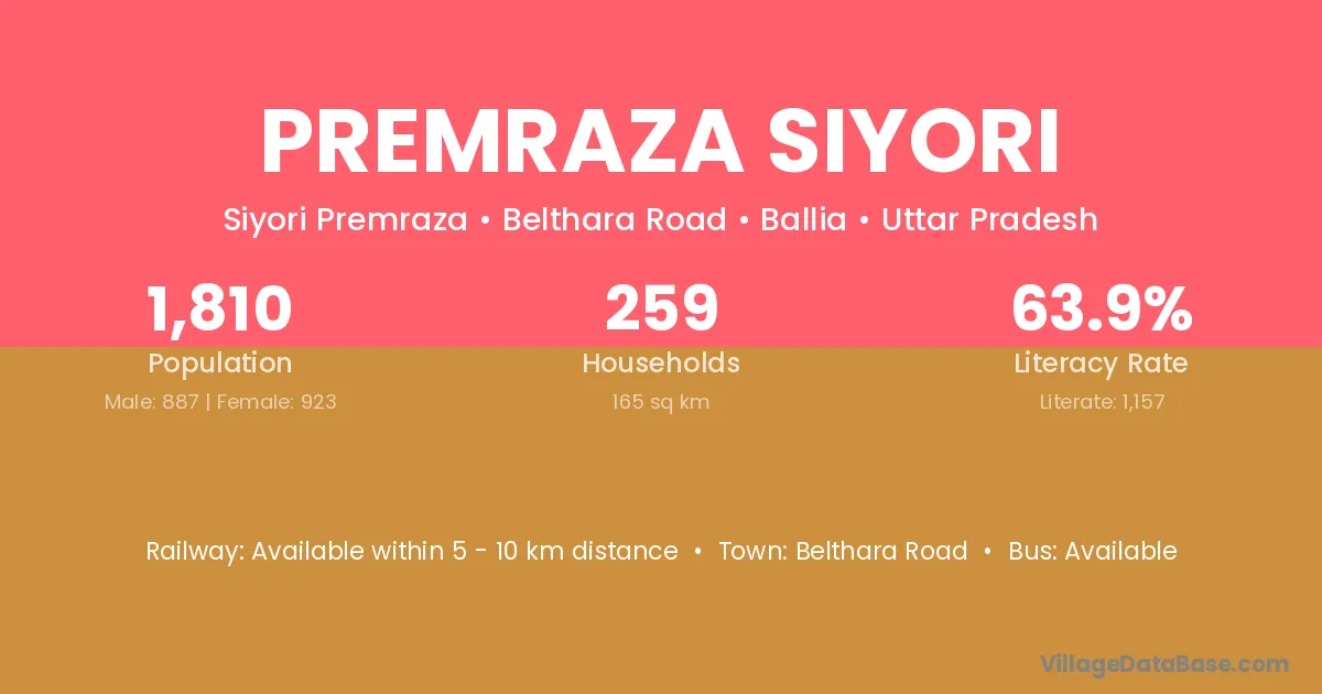 Belthara Road is the nearest town to Premraza Siyori village for major economic activities
