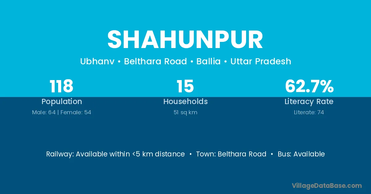 Shahunpur village has a total population of 118 people, of which 64 are males and 54 are females.