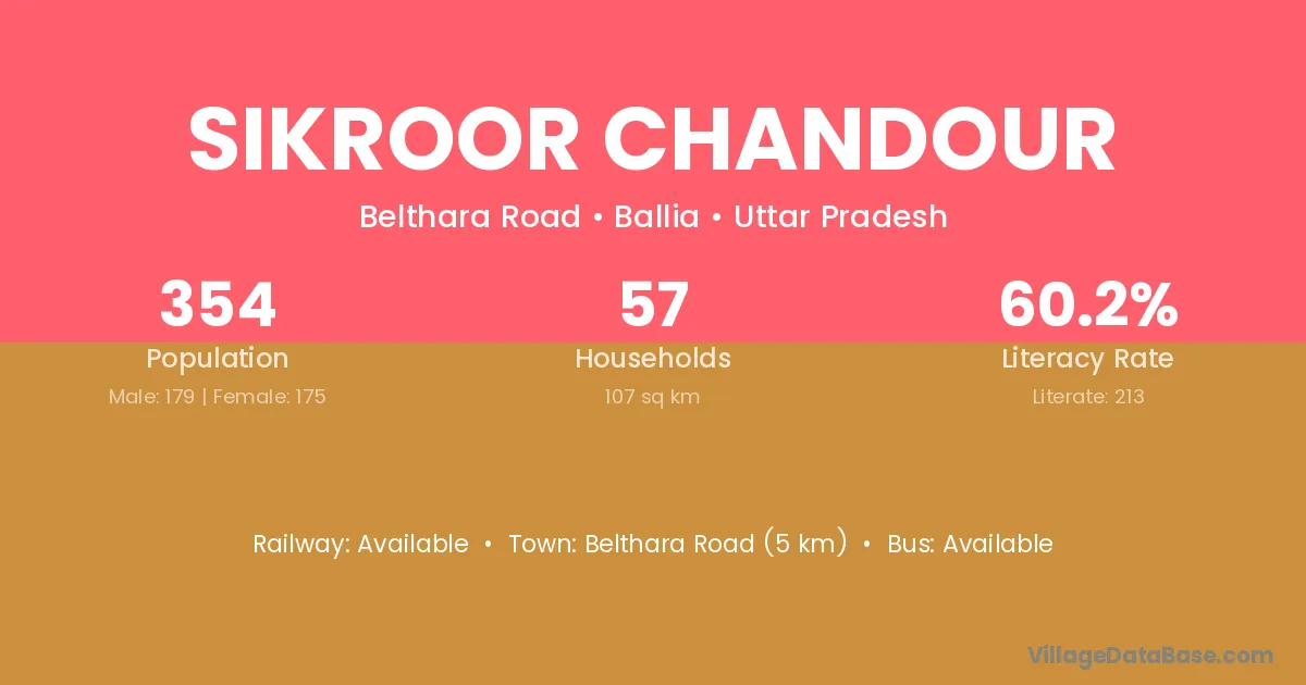 Belthara Road (5 km) is the nearest town to Sikroor Chandour village for major economic activities and is located approximately 5 km away.