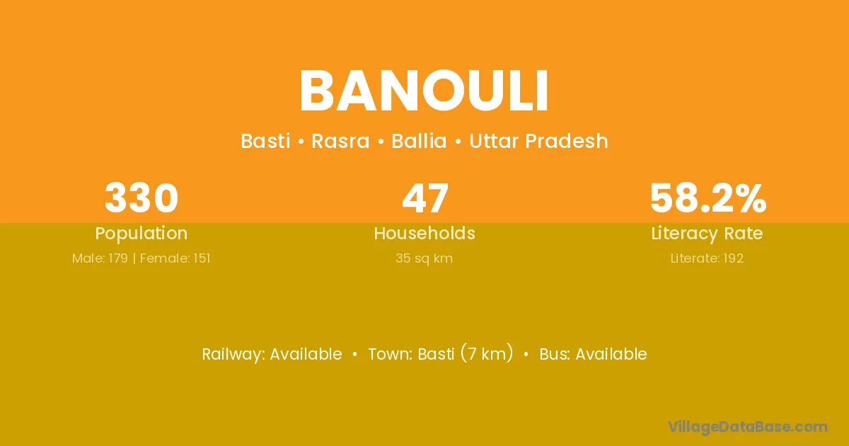 Basti (7 km) is the nearest town to Banouli village for major economic activities and is located approximately 7 km away.