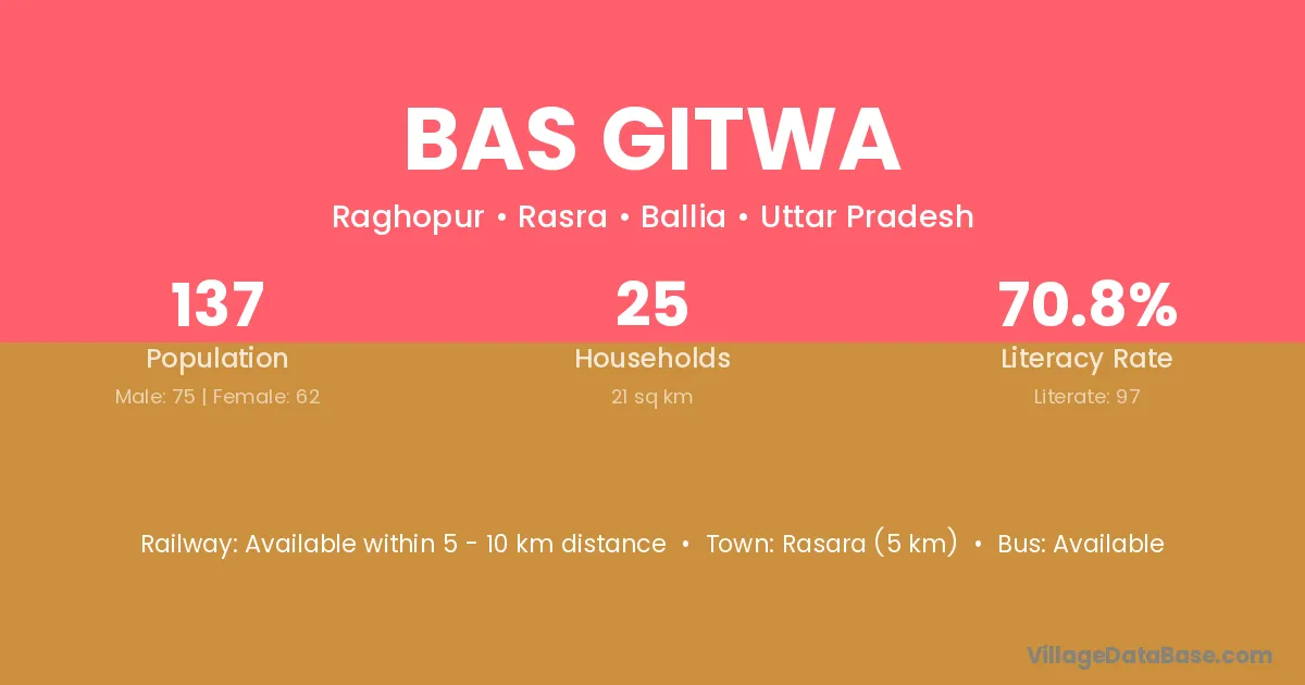 Bas Gitwa village is located in the Rasra Tehsil of the Ballia district in Uttar Pradesh .