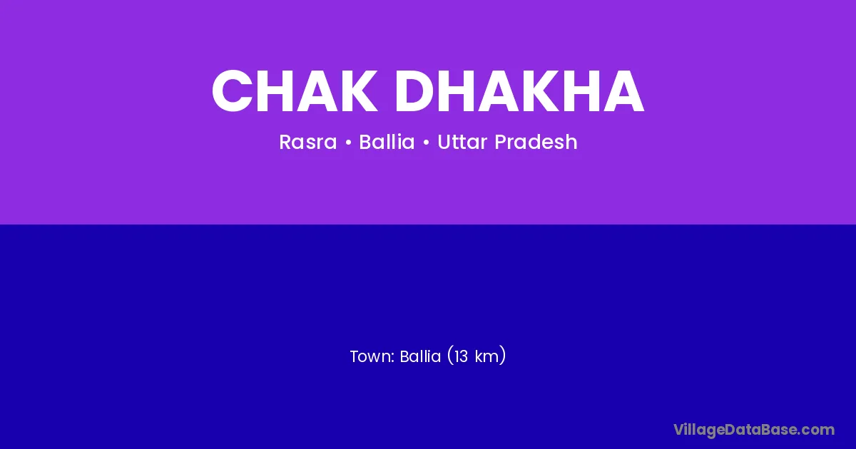 Ballia (13 km) is the nearest town to Chak Dhakha village for major economic activities and is located approximately 13 km away.