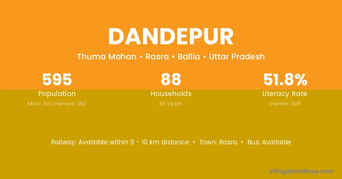 The literacy rate of Dandepur village is 51.76%. Male literacy stands at 60.70% and female literacy at 41.84%.