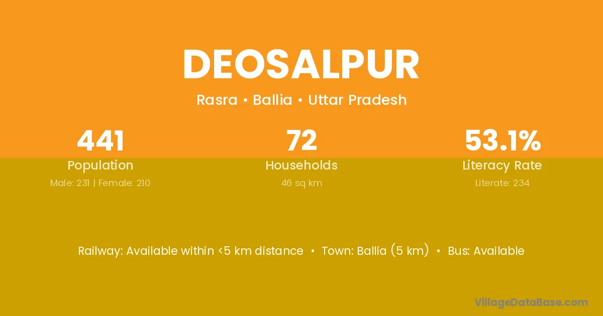 Ballia (5 km) is the nearest town to Deosalpur village for major economic activities and is located approximately 5 km away.