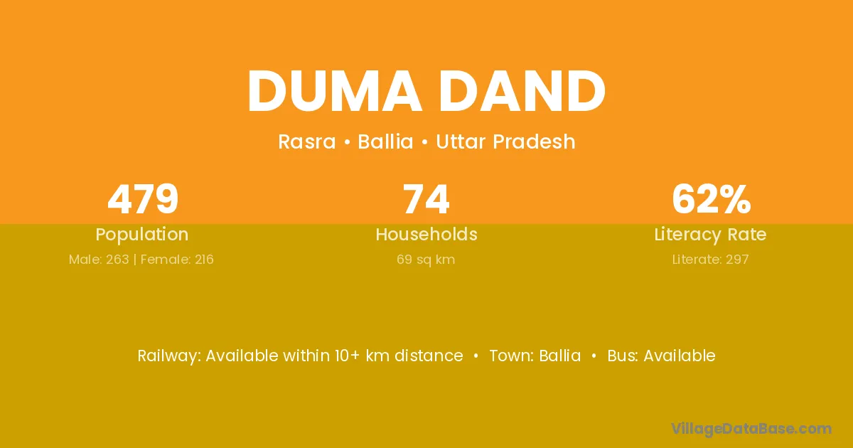 Ballia is the nearest town to Duma Dand village for major economic activities