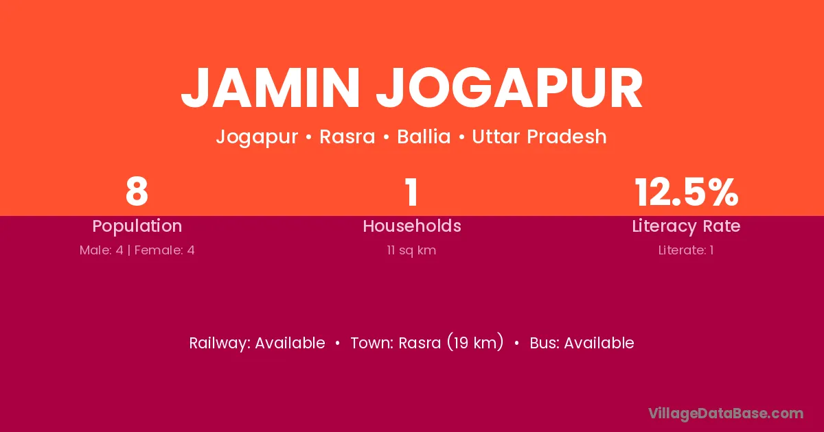 Jamin Jogapur village has a total population of 8 people, of which 4 are males and 4 are females.