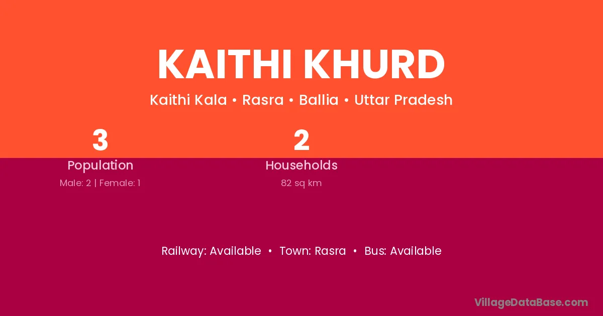 Kaithi Khurd village has a total population of 3 people, of which 2 are males and 1 are females.
