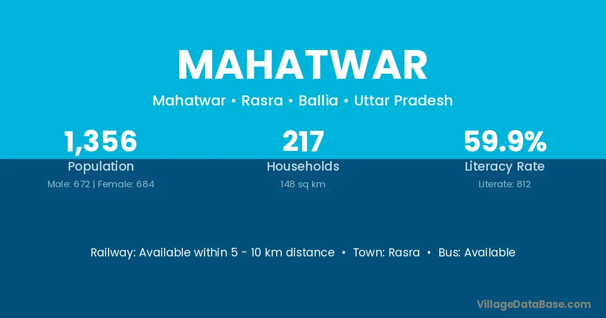 Mahatwar village has a total population of 1,356 people, of which 672 are males and 684 are females.