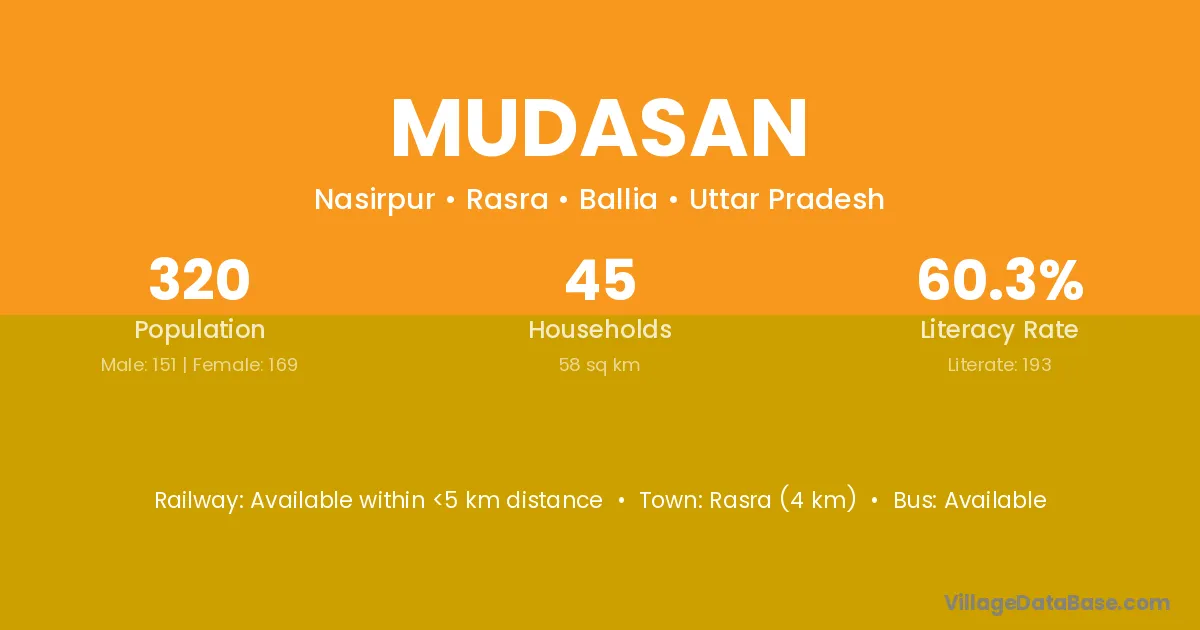 Rasra (4 km) is the nearest town to Mudasan village for major economic activities and is located approximately 4 km away.