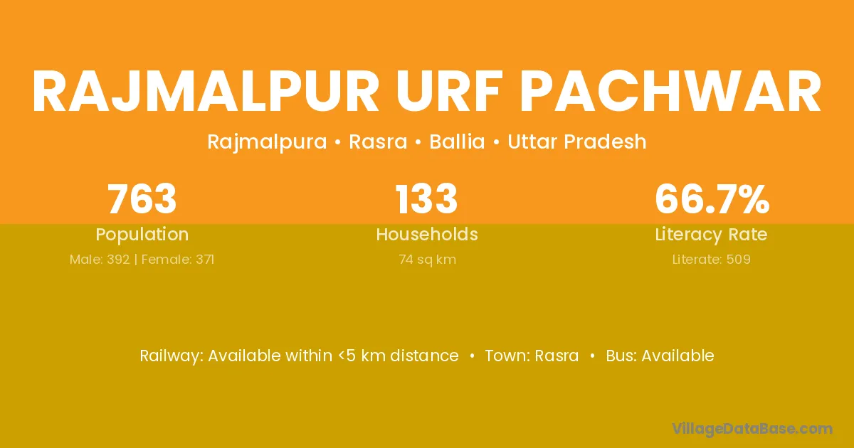 Rajmalpur Urf Pachwar village has a total population of 763 people, of which 392 are males and 371 are females.