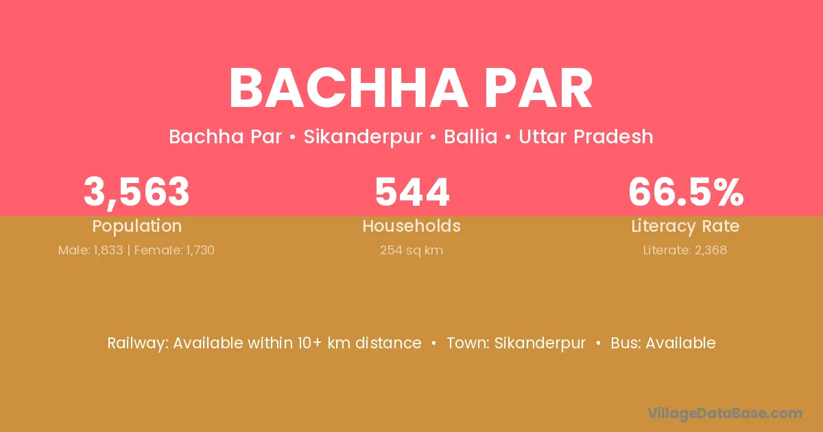 Bachha Par village has a total population of 3,563 people, of which 1,833 are males and 1,730 are females.