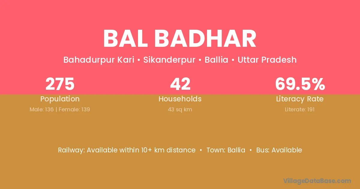 Ballia is the nearest town to Bal Badhar village for major economic activities