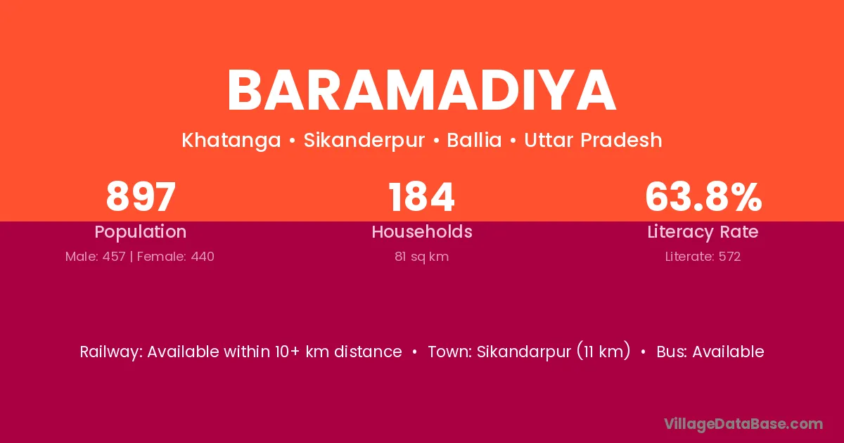 Sikandarpur (11 km) is the nearest town to Baramadiya village for major economic activities and is located approximately 11 km away.