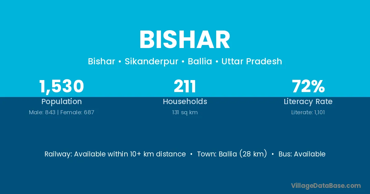 Ballia (28 km) is the nearest town to Bishar village for major economic activities and is located approximately 28 km away.
